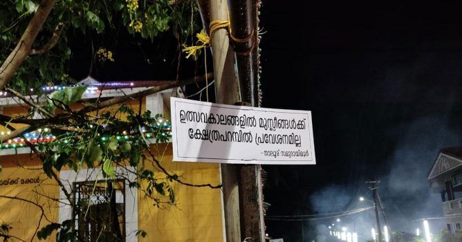 വിമര്ശനങ്ങള്ക്ക് പുല്ലുവില; ഉല്സവത്തിന് മുസ്ലിംകള്ക്ക് പ്രവേശനമില്ലെന്ന ബോര്ഡ് വീണ്ടും സ്ഥാപിച്ച് ക്ഷേത്രകമ്മിറ്റി, പ്രതിഷേധിച്ച് ഡിവൈഎഫ്ഐ