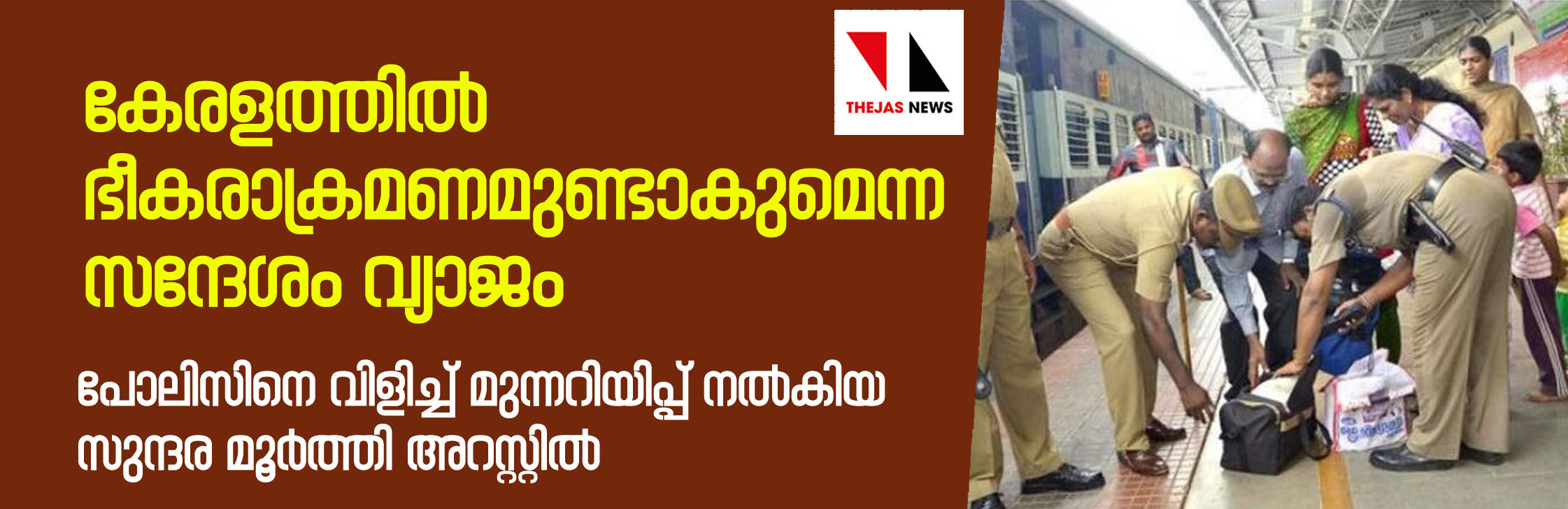 കേരളത്തില് ഭീകരാക്രമണമുണ്ടാകുമെന്ന സന്ദേശം വ്യാജം; പോലിസിനെ വിളിച്ച് മുന്നറിയിപ്പ് നല്കിയ സുന്ദര മൂര്ത്തി അറസ്റ്റില്