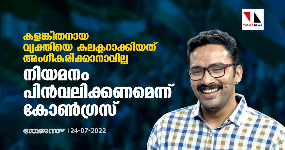 കളങ്കിതനായ വ്യക്തിയെ കലക്ടറാക്കിയത് അംഗീകരിക്കാനാവില്ല; നിയമനം പിന്വലിക്കണമെന്ന് കോണ്ഗ്രസ്