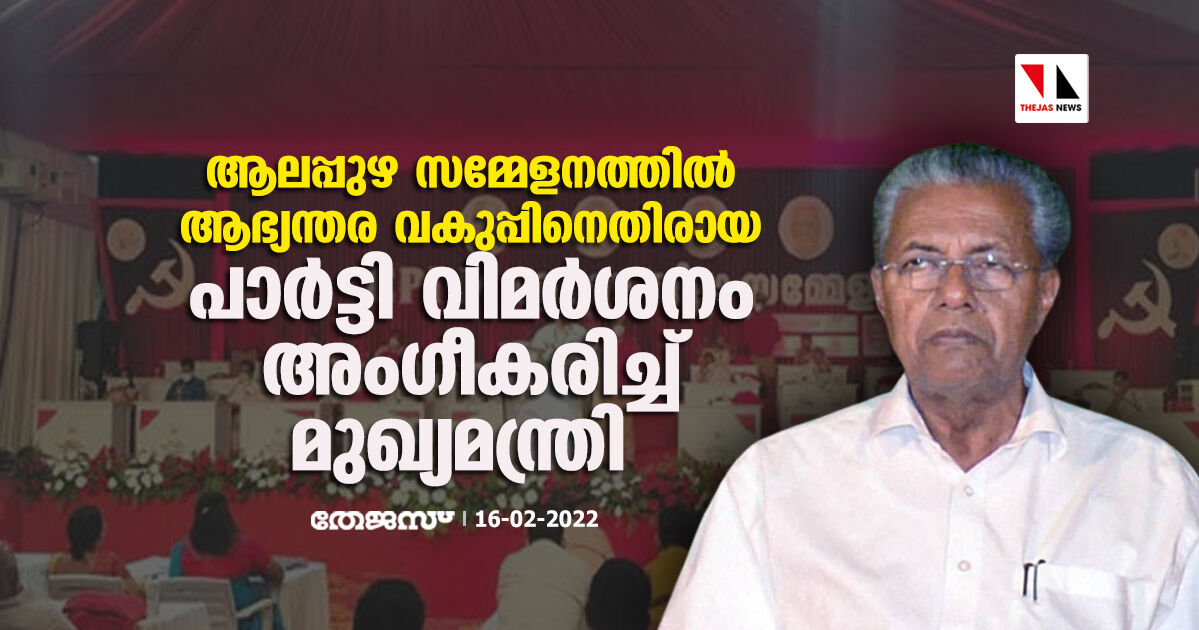 ആലപ്പുഴ സമ്മേളനത്തിൽ ആഭ്യന്തര വകുപ്പിനെതിരായ പാര്ട്ടി വിമര്ശനം അംഗീകരിച്ച് മുഖ്യമന്ത്രി
