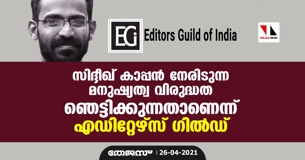 സിദ്ദീഖ് കാപ്പന് നേരിടുന്ന മനുഷ്യത്വ വിരുദ്ധത ഞെട്ടിക്കുന്നതാണെന്ന് എഡിറ്റേഴ്സ് ഗില്ഡ്