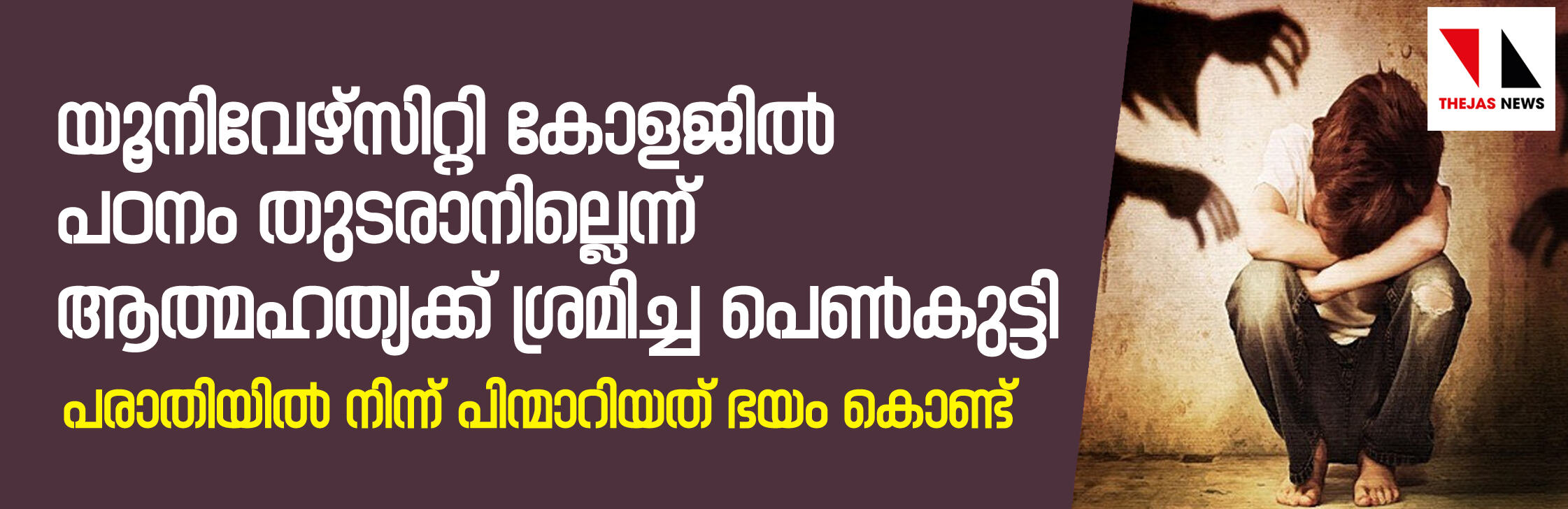 യൂനിവേഴ്സിറ്റി കോളജില് പഠനം തുടരാനില്ലെന്ന് ആത്മഹത്യക്ക് ശ്രമിച്ച പെണ്കുട്ടി; പരാതിയില് നിന്ന് പിന്മാറിയത് ഭയം കൊണ്ട്