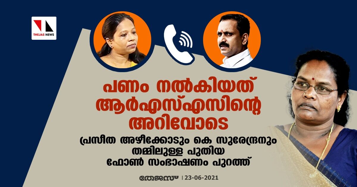 പണം നല്കിയത് ആര്എസ്എസിന്റെ അറിവോടെ; പ്രസീത അഴീക്കോടും കെ സുരേന്ദ്രനും തമ്മിലുള്ള പുതിയ ഫോണ് സംഭാഷണം പുറത്ത്