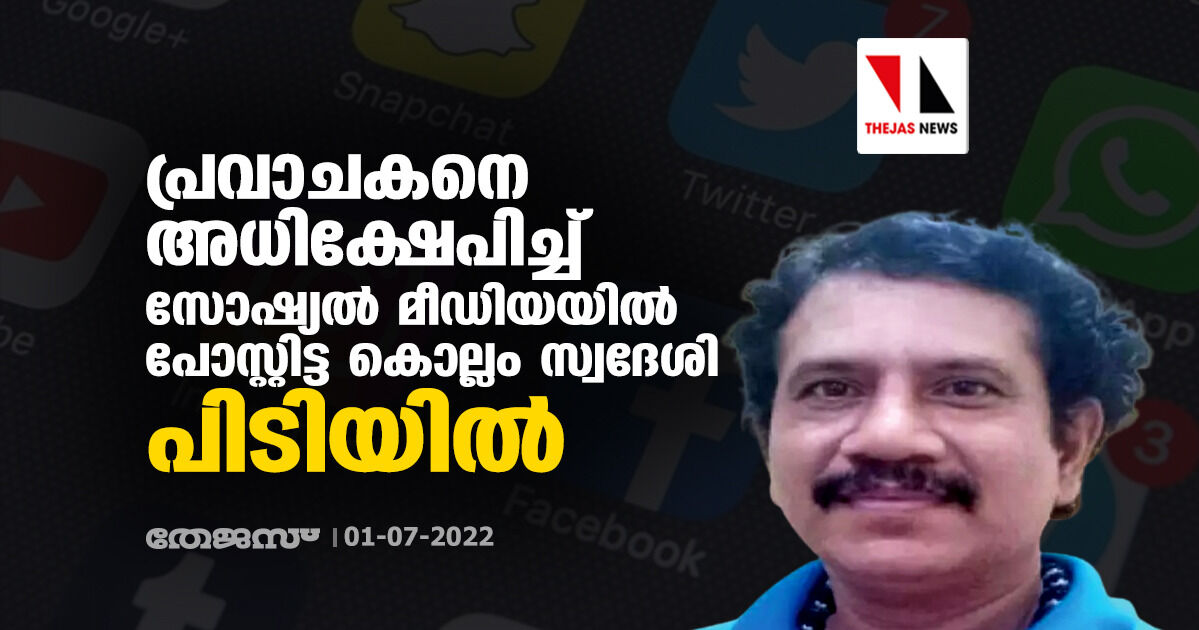 പ്രവാചകനെ അധിക്ഷേപിച്ച് സോഷ്യല് മീഡിയയില് പോസ്റ്റിട്ട കൊല്ലം സ്വദേശി പിടിയില്