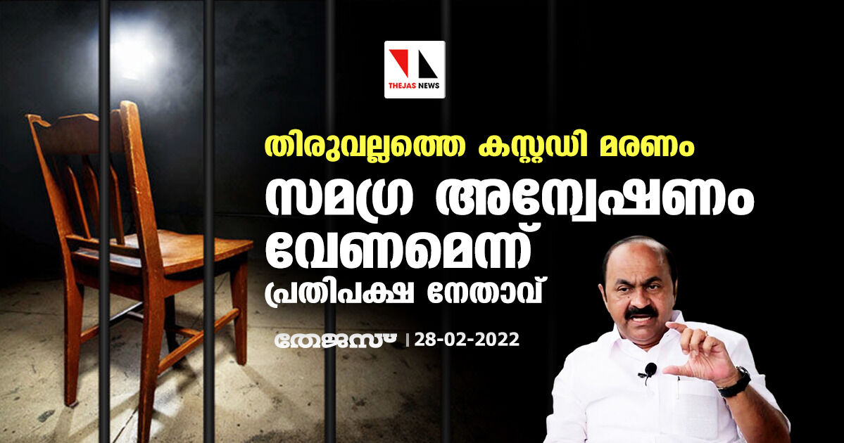 തിരുവല്ലത്തെ കസ്റ്റഡി മരണം; സമഗ്ര അന്വേഷണം വേണമെന്ന് പ്രതിപക്ഷ നേതാവ്
