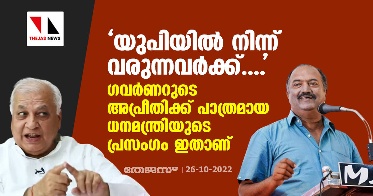 'യുപിയില് നിന്ന് വരുന്നവര്ക്ക്....' ഗവര്ണറുടെ അപ്രീതിക്ക് പാത്രമായ ധനമന്ത്രിയുടെ പ്രസംഗം ഇതാണ്