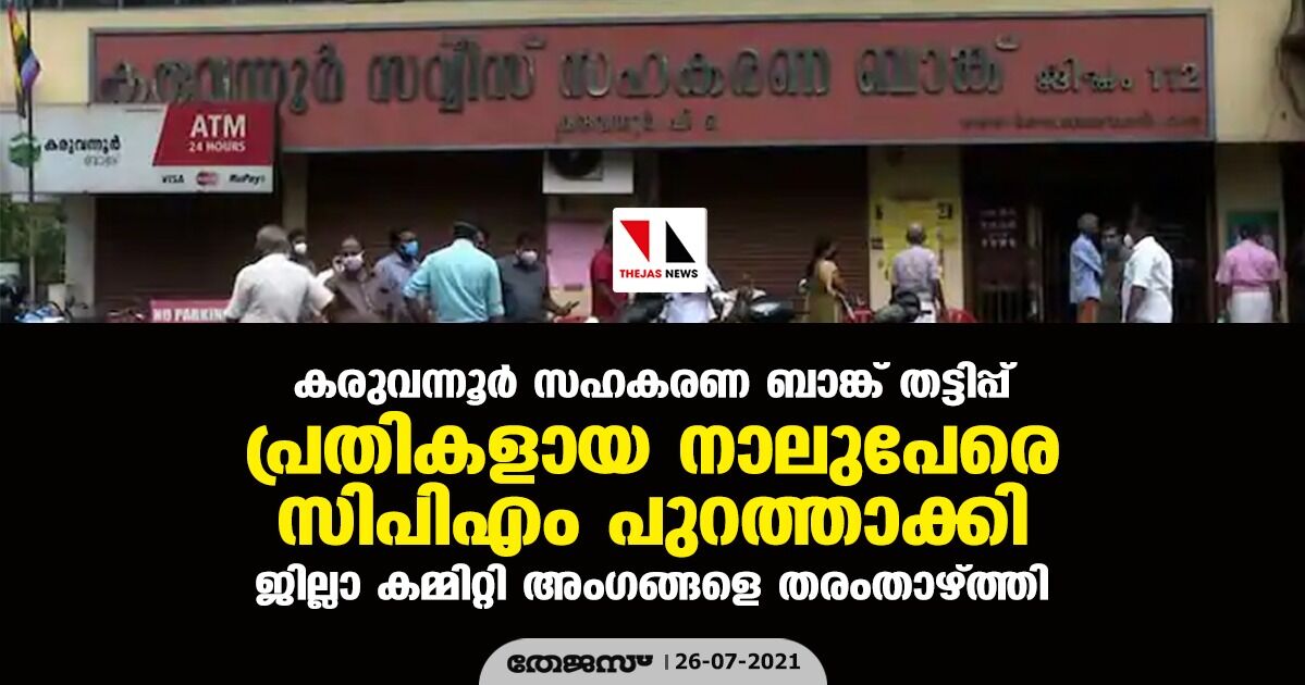 കരുവന്നൂര് സഹകരണ ബാങ്ക് തട്ടിപ്പ്: പ്രതികളായ നാലുപേരെ സിപിഎം പുറത്താക്കി; ജില്ലാ കമ്മിറ്റി അംഗങ്ങളെ തരംതാഴ്ത്തി