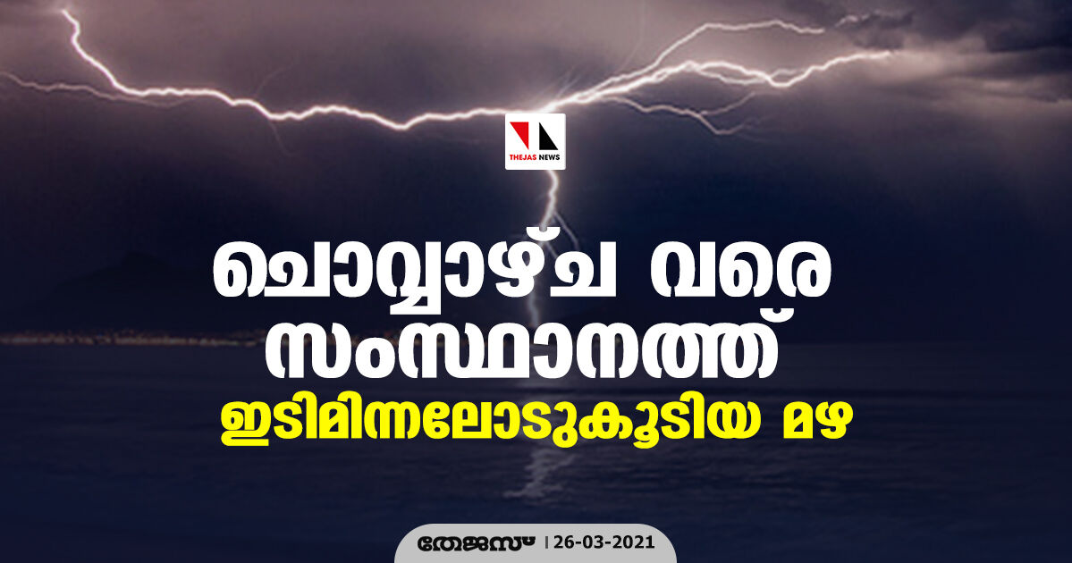 ചൊവ്വാഴ്ച വരെ സംസ്ഥാനത്ത് ഇടിമിന്നലോടുകൂടിയ മഴ