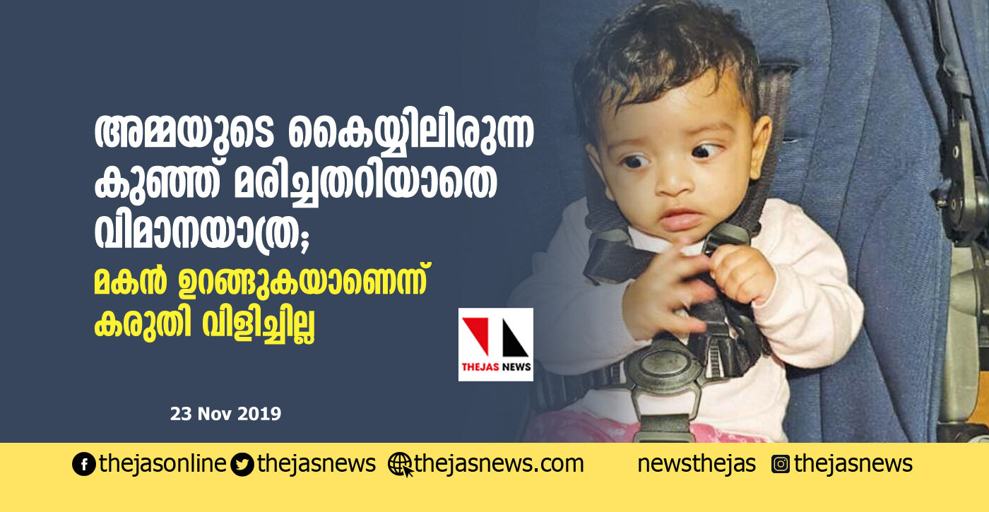 അമ്മയുടെ കൈയ്യിലിരുന്ന കുഞ്ഞ് മരിച്ചതറിയാതെ വിമാനയാത്ര; മകന് ഉറങ്ങുകയാണെന്ന് കരുതി വിളിച്ചില്ല