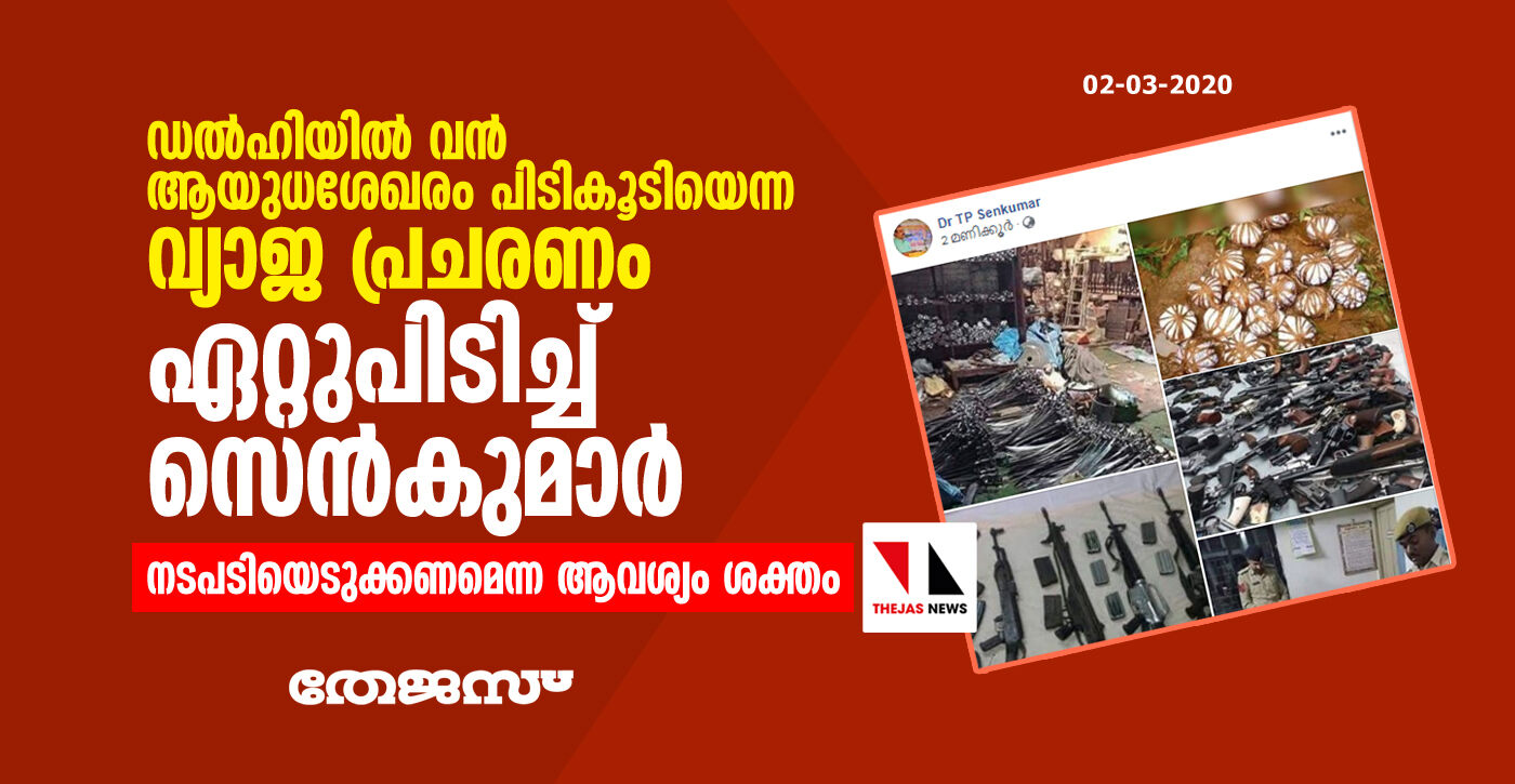 ഡല്ഹിയില് വന് ആയുധശേഖരം പിടികൂടിയെന്ന വ്യാജ പ്രചരണം ഏറ്റുപിടിച്ച് സെന്കുമാര്; നടപടി വേണമെന്ന ആവശ്യം ശക്തം