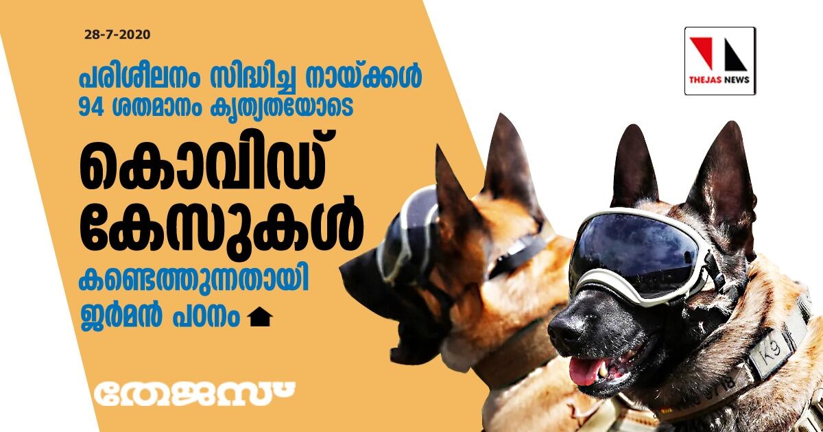 പരിശീലനം സിദ്ധിച്ച നായ്ക്കള് 94 ശതമാനം കൃത്യതയോടെ കൊവിഡ് കേസുകള് കണ്ടെത്തിയതായി ജര്മന് പഠനം