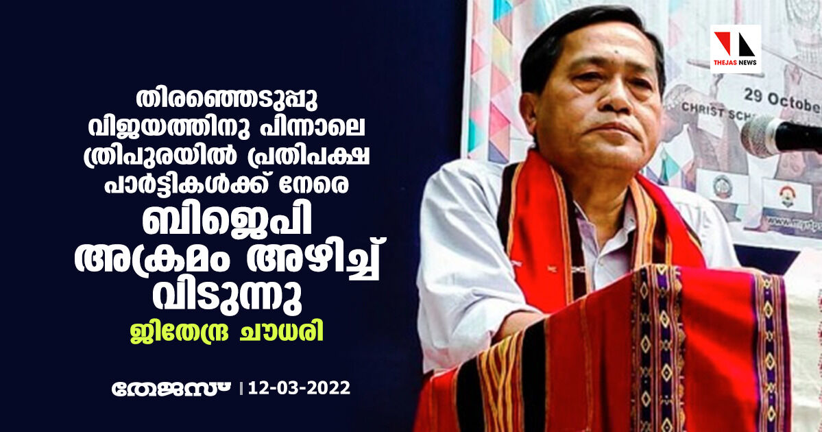 തിരഞ്ഞെടുപ്പു വിജയത്തിനു പിന്നാലെ ത്രിപുരയില് പ്രതിപക്ഷ പാര്ട്ടികള്ക്ക് നേരെ ബിജെപി അക്രമം അഴിച്ച് വിടുന്നു:ജിതേന്ദ്ര ചൗധരി