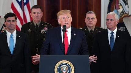 ഇറാഖിലുള്ള എല്ലാ യുഎസ് പട്ടാളക്കാരും സുരക്ഷിതരാണെന്നും സൈനിക കേന്ദ്രത്തില് നിസാര നഷ്ടം മാത്രമാണ് ഉണ്ടായെന്നും ട്രംപ് അവകാശപ്പെട്ടു. ഗ്രേറ്റ് അമേരിക്കന് ഫോഴ്സ് എന്തിനും സന്നദ്ധരാണ്. 'ഭീകരത'യ്ക്കു സഹായം നല്കുന്നത് ഇറാന് നിര്ത്തണം. സുലൈമാനി 'തീവ്രവാദികള്ക്ക്' പരിശീലനം നല്കിയിരുന്ന ആളാണ്. സുലൈമാനിയുടെ വധത്തിലൂടെ ലോകത്തിന് നല്കിയത് ശക്തമായ സന്ദേശമാണെന്നും പറഞ്ഞു. ഇറാന് ഭീകരവാദത്തിന്റെ മുന്നിര പ്രായോജകരാണ്. തന്റെ നിര്ദ്ദേശത്തിന്റെ അടിസ്ഥാനത്തിലാണ് അദ്ദേഹത്തെ വധിച്ചതെന്നും ട്രംപ് പറഞ്ഞു. സൈനിക തലവനെന്ന നിലയില് സുലൈമാനി പല ആക്രമണങ്ങള്ക്കും മുഖ്യകാരണക്കാരനായിരുന്നു. അയാള് ഹിസ്ബുല്ലയടക്കമുള്ള 'തീവ്രവാദികളെ' പരിശീലിപ്പിച്ചു. ആഭ്യന്തര യുദ്ധത്തിലും എരിതീയില് എണ്ണപകര്ന്നു. ബഗ്ദാദ് യുഎസ് എംബസിക്കു നേരെ ആക്രമണം നടത്തിയതിനു പിന്നിലും സുലൈമാനിയാണ്. യുഎസിനെതിരെ മറ്റു പദ്ധതികള് തയാറാക്കുകയായിരുന്നു സുലൈമാനി, പക്ഷേ അമേരിക്ക അതു തകര്ത്തു. സുലൈമാനിയെ നേരത്തേ വകവരുത്തേണ്ടതായിരുന്നു.