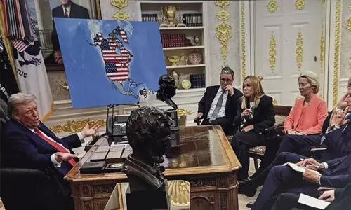 ഗ്രീന്ലാന്ഡ് ചേര്ത്ത യുഎസിന്റെ ഭൂപടവുമായി ഡോണള്ഡ് ട്രംപ്