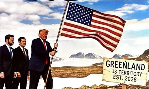 അതില് അദ്ദേഹം, വൈസ് പ്രസിഡന്റ് ജെഡി വാന്സ്, യുഎസ് സ്റ്റേറ്റ് സെക്രട്ടറി മാര്ക്കോ റൂബിയോ എന്നിവരോടൊപ്പം ഗ്രീന്ലന്ഡില് യുഎസ് പതാക ഉയര്ത്തുന്നതായും കാണാം. സമീപത്തെ ഒരു ബോര്ഡില് എഴുതിയിരുന്നതിങ്ങനെ- ഗ്രീന്ലാന്ഡ്, യുഎസ് ടെറിട്ടറി, Est. 2026.