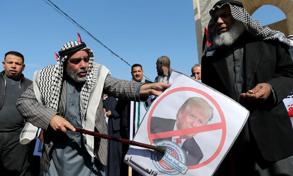 ട്രംപിന്റെ പ്രസ്താവന വെല്ലുവിളിയാണെന്നും ദൂരവ്യാപക പ്രത്യാഘാതം ഉണ്ടാക്കുമെന്നും ഹമാസ് വക്താവ് സമി അബു സൂരി പറഞ്ഞു. ജെറുസലേമിനെക്കുറിച്ചുള്ള ട്രംപിന്റെ പ്രസ്താവന വിഡ്ഢിത്തമാണ്, ജെറുസലേം എല്ലായ്പ്പോഴും ഫലസ്തീനികളുടെ നാടായിരിക്കും. ഫലസ്തീനികള് ഇതിനെ നേരിടുമെന്നും അദ്ദേഹം പറഞ്ഞു. ട്രംപിനെ ഇംപീച്ച്മന്റില്നിന്നും നെതന്യാഹുവിനെ ജയിലില്നിന്നും രക്ഷിക്കാനുള്ള പദ്ധതിയാണിതെന്നു മന്ത്രിസഭ യോഗത്തില് ഇശ്തയ്യ പറഞ്ഞു. പദ്ധതിക്കെതിരേ ഒന്നിച്ചുനീങ്ങാന് ഫലസ്തീനിലെ പ്രധാന കക്ഷികളായ ഹമാസും ഫത്ഹും തീരുമാനിച്ചു. റഷ്യന് പ്രസിഡന്റ് വഌദിമിര് പുടിനുമായി പദ്ധതിയെ കുറിച്ച് ചര്ച്ച ചെയ്യാന് നെതന്യാഹു ബുധനാഴ്ച മോസ്കോയിലേക്ക് തിരിക്കും. നെതന്യാഹുവിന്റെ പ്രധാന എതിരാളിയും ഇസ്രായേല് പ്രതിപക്ഷ നേതാവുമായ ബെന്നി ഗാന്റ്സും പദ്ധതിയെ സ്വാഗതം ചെയ്തു. ഇംപീച്ച്മെന്റ് നടപടികള് സെനറ്റില് തുടരുന്നതിനിടെയാണ് ട്രംപും നെതന്യാഹുവും പശ്ചിമേഷ്യന് സമാധാന പദ്ധതിയെന്ന പേരില് പുതിയ നീക്കം നടത്തുന്നത്. നെതന്യാഹുവിനെതിരേ അഴിമതിക്കേസ് വിചാരണ കോടതിയില് തുടങ്ങാനിരിക്കുകയാണ്. മാത്രമല്ല, അടുത്തമാസമാണ് ഇസ്രായേല് തിരഞ്ഞെടുപ്പ് നടക്കുന്നത്. അമേരിക്കന് എംബസി തെല് അവീവില് നിന്ന് മാറ്റി ട്രംപ് നേരത്തേ ജെറുസലേമിനെ ഇസ്രയേല് തലസ്ഥാനമായി ട്രംപ് ഭരണകൂടം അംഗീകരിച്ചിരുന്നു.