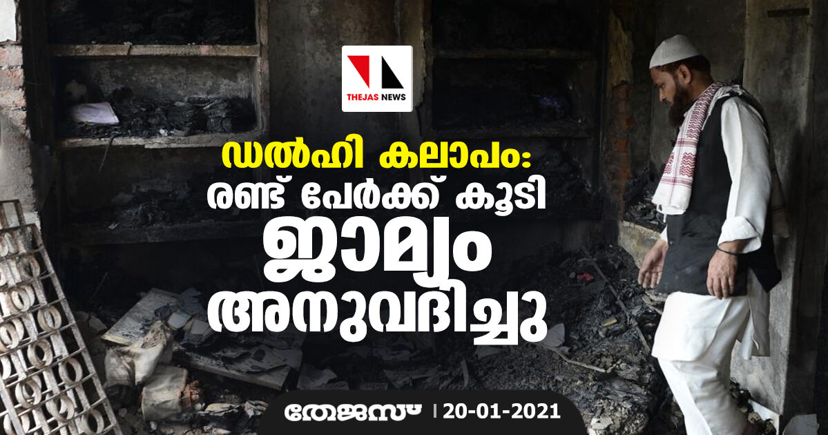 ഡല്ഹി കലാപം: രണ്ട് പേര്ക്ക് കൂടി ജാമ്യം അനുവദിച്ചു