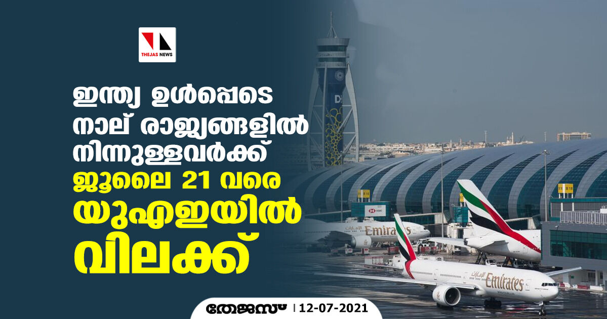 ഇന്ത്യ ഉൾപ്പെടെ നാല് രാജ്യങ്ങളിൽ നിന്നുള്ളവർക്ക് ജൂലൈ 21 വരെ യുഎഇയിൽ വിലക്ക്