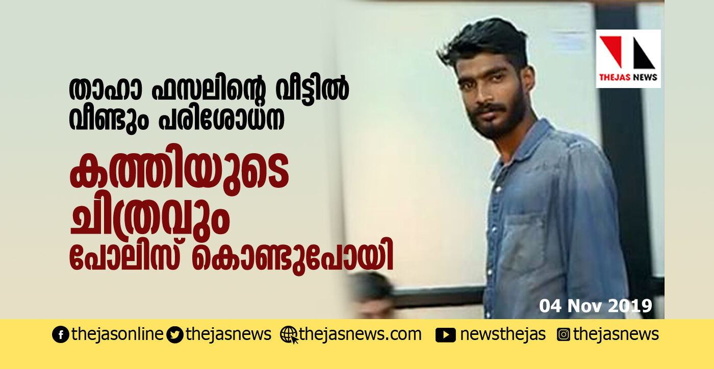 താഹാ ഫസലിന്റെ വീട്ടില് വീണ്ടും പരിശോധന; കത്തിയുടെ ചിത്രവും പോലിസ് കൊണ്ടു പോയി