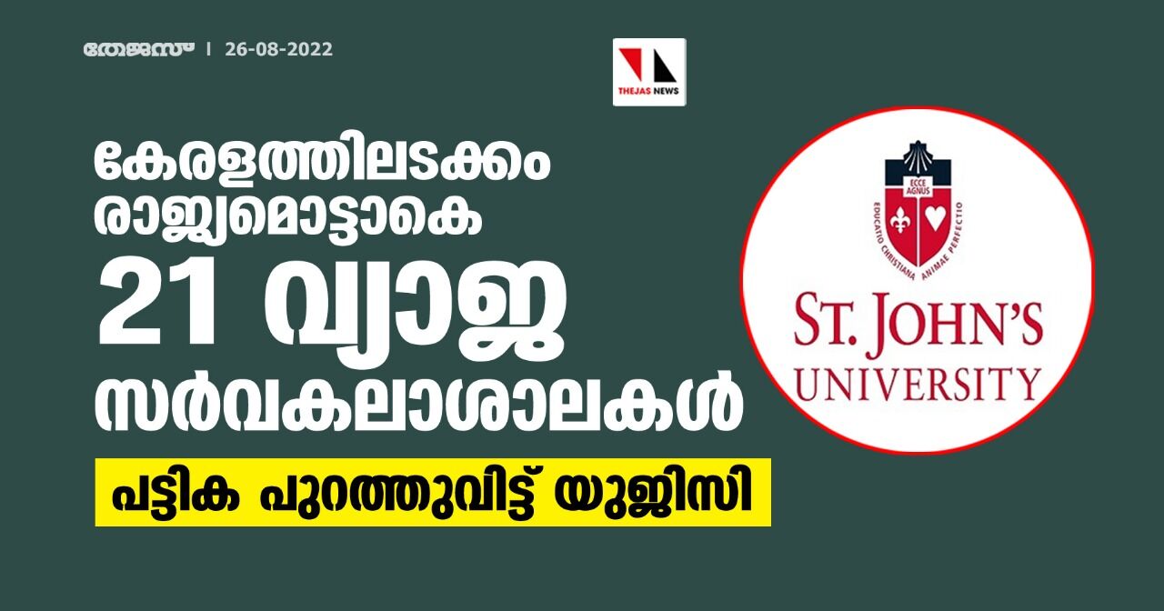 പട്ടികയിൽ കേരളത്തിലെ സെന്റ് ജോൺസ് സർവകലാശാലയും ഉൾപ്പെടുന്നു. ഈ സർവകലാശാലകൾക്ക് ബിരുദം നൽകാൻ യോഗ്യതയില്ലെന്ന് യുജിസി സെക്രട്ടറി രാജ്നിഷ് ജെയ്ൻ അറിയിച്ചു.