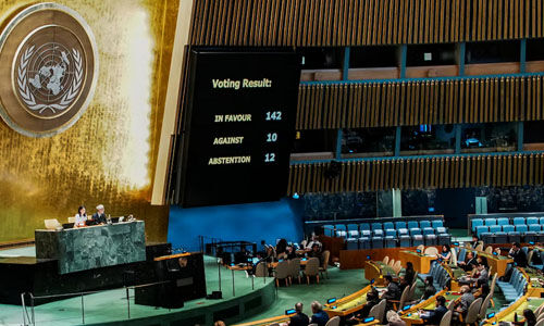 സ്വതന്ത്ര ഫലസ്തീന് രാഷ്ട്രം വേണം: യുഎന് ജനറല് അസംബ്ലി; പിന്തുണച്ച് ഇന്ത്യയും