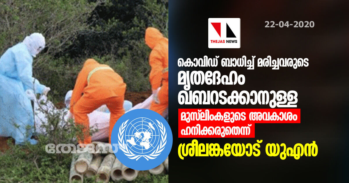 കൊവിഡ് ബാധിച്ച് മരിച്ചവരുടെ മൃതദേഹം ഖബറടക്കാനുള്ള മുസ്ലിംകളുടെ അവകാശം ഹനിക്കരുതെന്ന് ശ്രീലങ്കയോട് യുഎന്