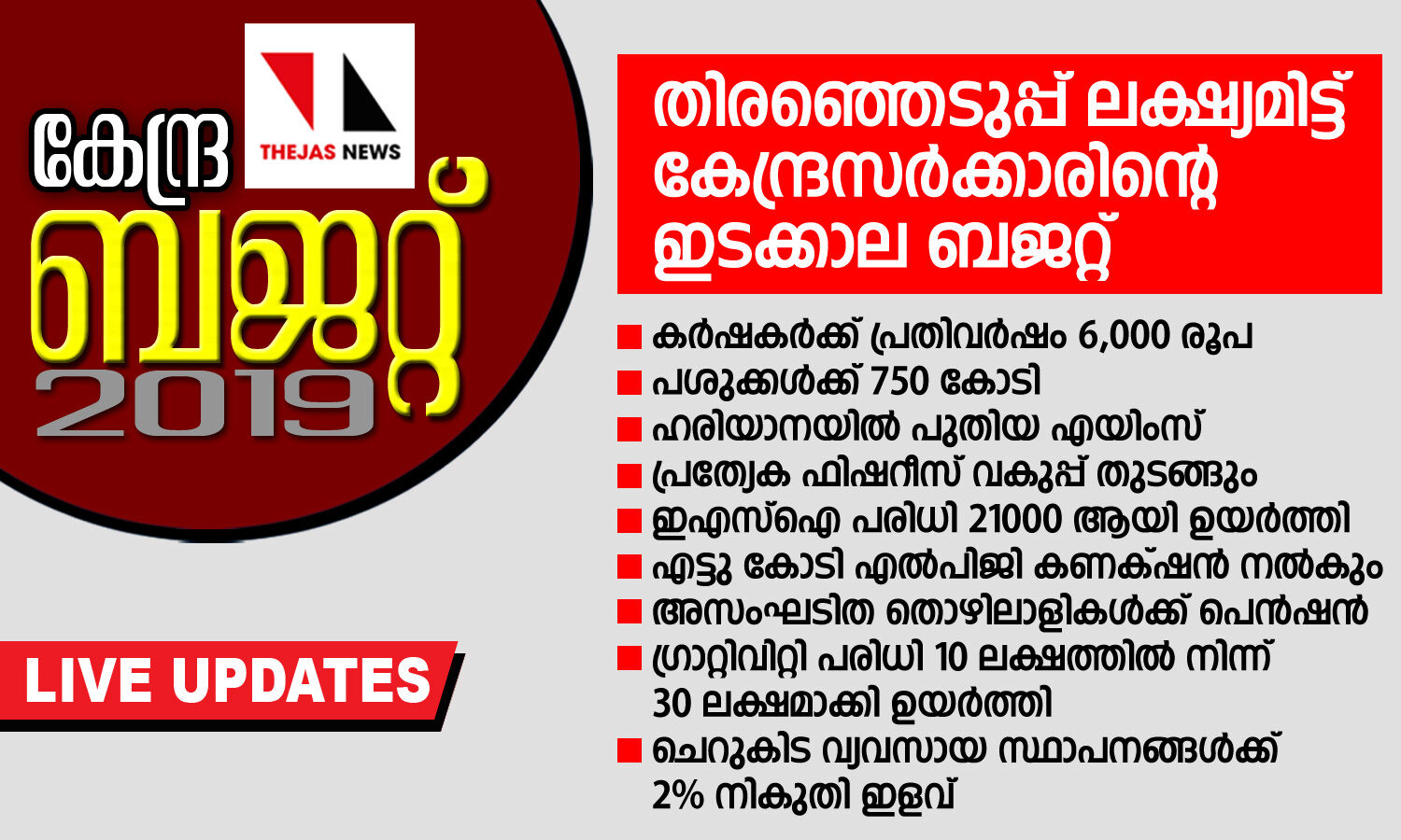 കേന്ദ്ര ബജറ്റ് 2019: പ്രധാന പ്രഖ്യാപനങ്ങള് (Live Updates)
