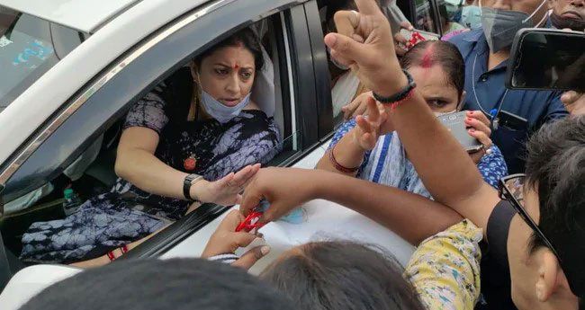 സ്മൃതി ഇറാനിക്ക് നേരെ ഗോ ബാക്ക് വിളി; വാഹനം തടഞ്ഞ് കോണ്ഗ്രസ് പ്രവര്ത്തകര്