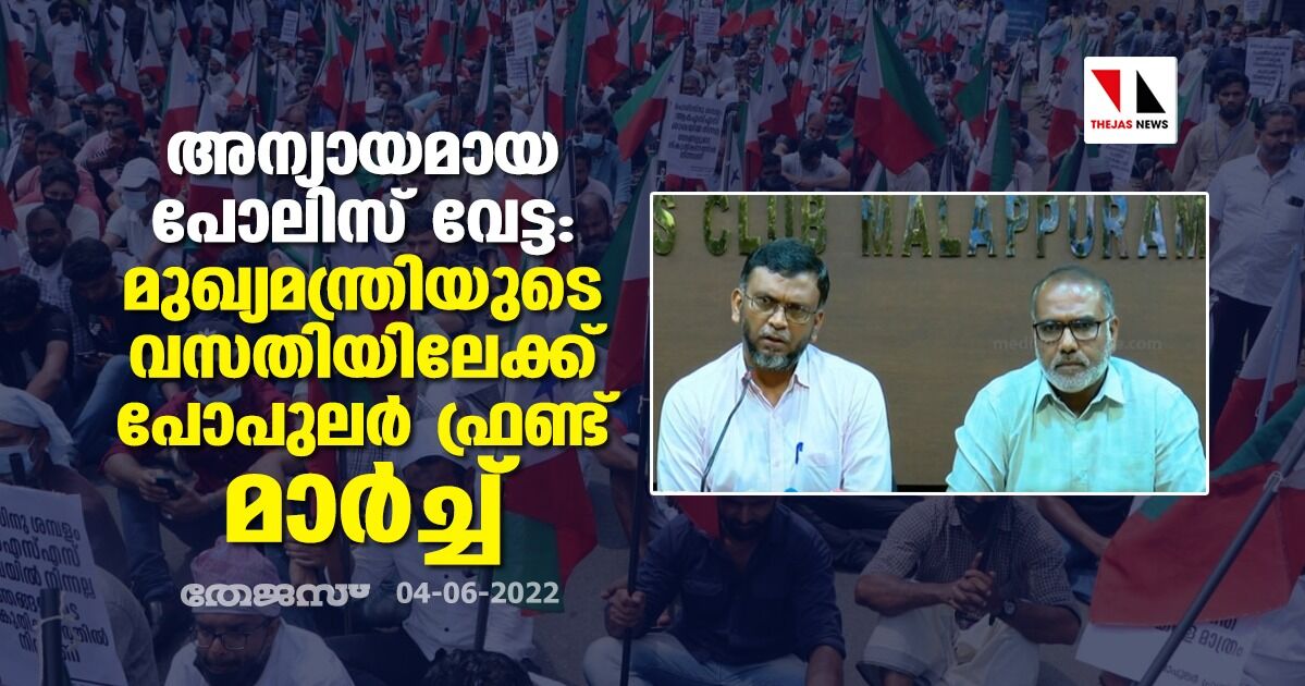 അന്യായമായ പോലിസ് വേട്ട: മുഖ്യമന്ത്രിയുടെ വസതിയിലേക്ക് പോപുലര് ഫ്രണ്ട് മാര്ച്ച്