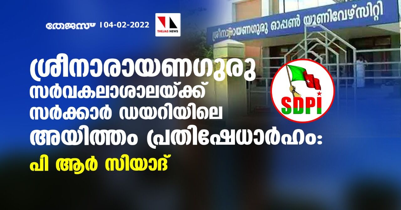 ശ്രീനാരായണഗുരു സര്വകലാശാലയ്ക്ക് സര്ക്കാര് ഡയറിയിലെ അയിത്തം പ്രതിഷേധാര്ഹം: പി ആര് സിയാദ്