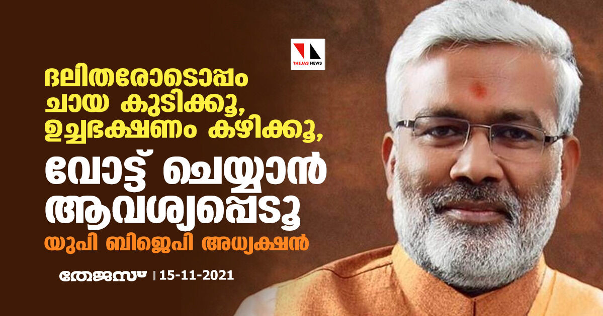 ദലിതരോടൊപ്പം ചായ കുടിക്കൂ, ഉച്ചഭക്ഷണം കഴിക്കൂ, വോട്ട് ചെയ്യാൻ ആവശ്യപ്പെടൂ: യുപി ബിജെപി അധ്യക്ഷൻ