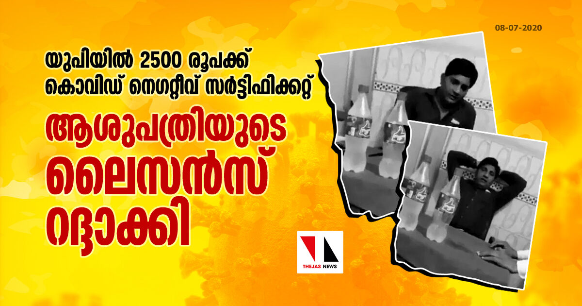യുപിയില് 2500 രൂപക്ക് കൊവിഡ് നെഗറ്റീവ് സര്ട്ടിഫിക്കറ്റ്; ആശുപത്രിയുടെ ലൈസന്സ് റദ്ദാക്കി