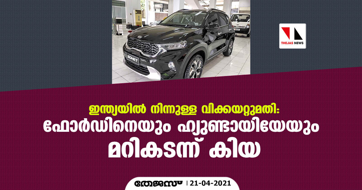 ഇന്ത്യയില് നിന്നുള്ള വണ്ടിക്കയറ്റുമതി: ഫോര്ഡിനെയും ഹ്യുണ്ടായിയേയും മറികടന്ന് കിയ