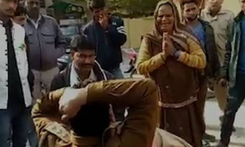 ഈ സംഭവത്തില് അന്വേഷണം വേണമെന്നാവശ്യപ്പെട്ടാണ് ബ്രഹ്മദേവി ഗുഡംബ സ്റ്റേഷനിലെത്തിയത്. എന്നാല് പോലിസ് സ്റ്റേഷന് പുറത്ത് കസേരയില് ഇരുന്ന ഇന്സ്പെക്ടര് തേജ് പ്രകാശ് കേസെടുക്കാന് തയ്യാറാവുകയോ എഫ്െഎആര് രജിസ്ട്രര് ചെയ്യുകയോ ചെയ്തില്ല. തുടര്ന്ന് ബ്രഹ്മദേവി ഇന്സ്പെക്ടറുടെ കാലില് വീണ് കേണപേക്ഷിക്കുകയായിരുന്നു. വൃദ്ധ യാചിച്ചുവീഴുന്ന വീഡിയോ വൈറലായതോടെയാണ് ഇന്സ്പെക്ടര്ക്കെതിരായ നടപടി. മുമ്പ് കേന്ദ്ര ആഭ്യന്തരമന്ത്രി രാജ്നാഥ് സിങ് രാജ്യത്തെ ഏറ്റവും മികച്ച മൂന്ന് പോലിസ് സ്റ്റേഷനുകളിലൊന്നിനുള്ള പുരസ്കാരം നല്കിയത് ഉത്തര്പ്രദേശിലെ ലഖ്നൗ പോലിസ് സ്റ്റേഷനായിരുന്നു.