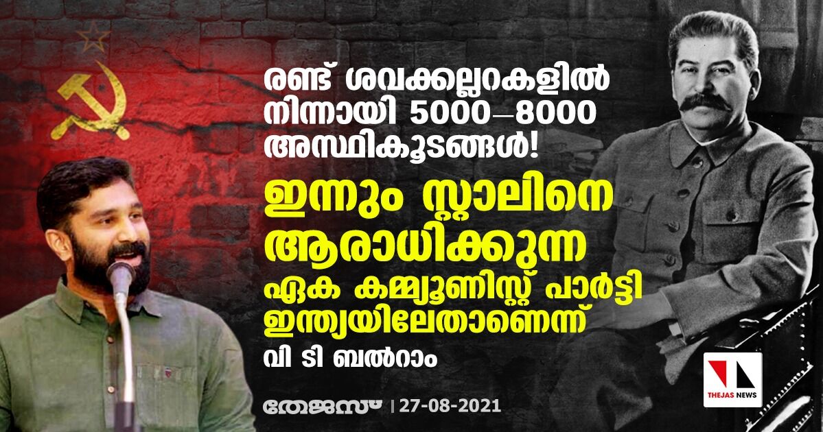 രണ്ട് ശവക്കല്ലറകളില് നിന്നായി 5000-8000 അസ്ഥികൂടങ്ങള്!; ഇന്നും സ്റ്റാലിനെ ആരാധിക്കുന്ന ഏക കമ്മ്യൂണിസ്റ്റ് പാര്ട്ടി ഇന്ത്യയിലേതാണെന്ന് വി ടി ബല്റാം
