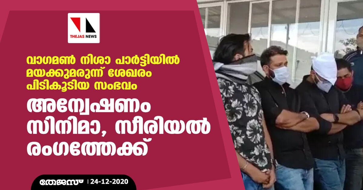 വാഗമണ് നിശാ പാര്ട്ടിയില് മയക്കുമരുന്ന് ശേഖരം പിടികൂടിയ സംഭവം: അന്വേഷണം സിനിമാ, സീരിയല് രംഗത്തേക്ക്