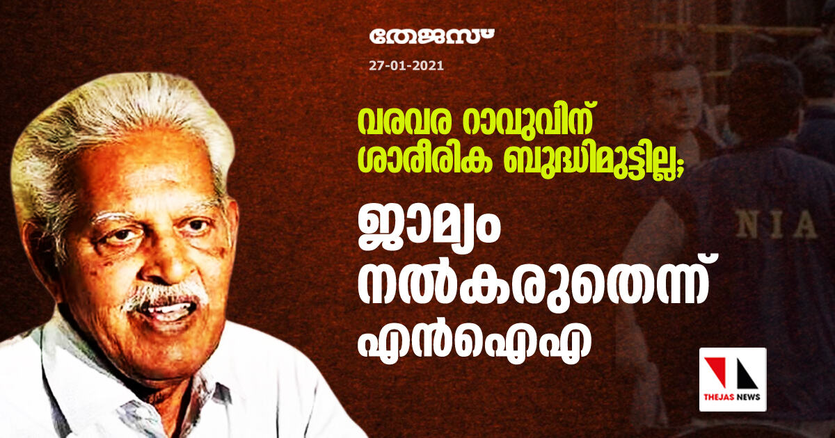 വരവര റാവുവിന് ശാരീരിക ബുദ്ധിമുട്ടില്ല; ജാമ്യം നൽകരുതെന്ന് എൻഐഎ