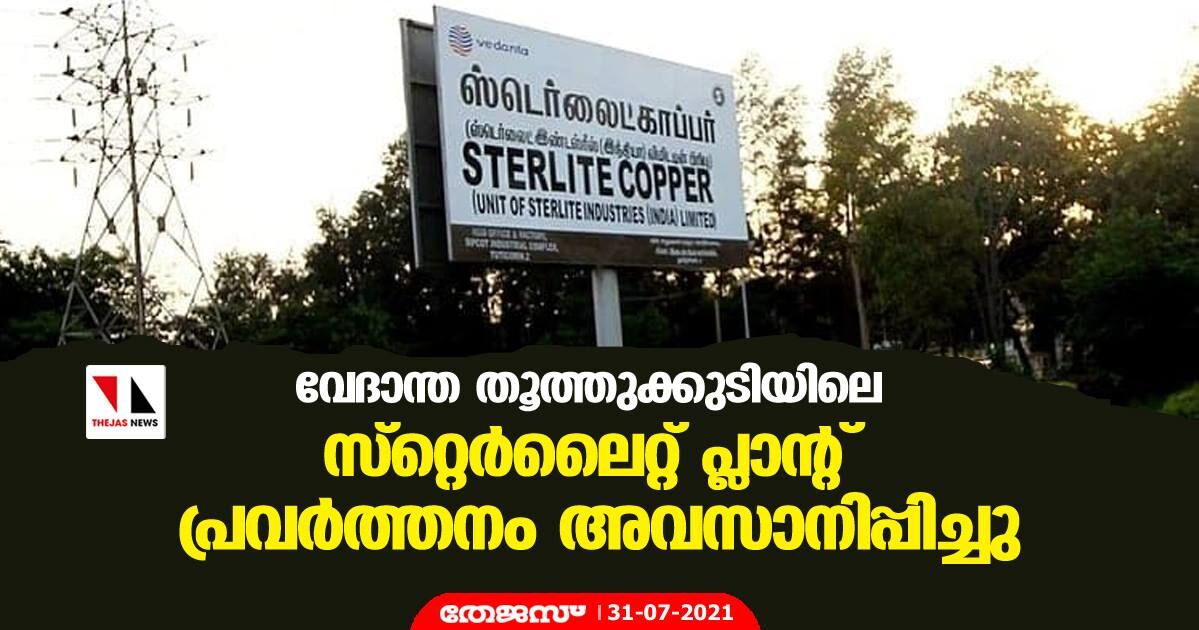 വേദാന്ത തൂത്തുക്കുടിയിലെ സ്റ്റെർലൈറ്റ് പ്ലാന്റ് പ്രവർത്തനം അവസാനിപ്പിച്ചു