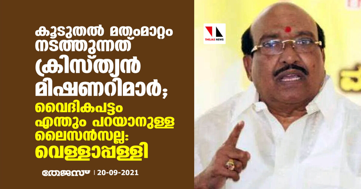 കൂടുതല് മതംമാറ്റം നടത്തുന്നത് ക്രിസ്ത്യന് മിഷണറിമാര്; വൈദികപട്ടം എന്തും പറയാനുള്ള ലൈസന്സല്ല: വെള്ളാപ്പള്ളി