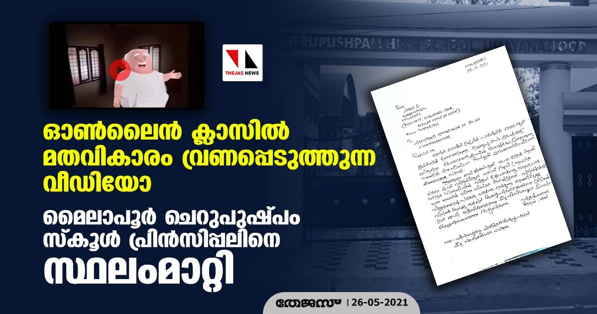 ഓണ്ലൈന് ക്ലാസില് മതവികാരം വ്രണപ്പെടുത്തുന്ന വീഡിയോ; മൈലാപൂര് ചെറുപുഷ്പം സ്കൂള് പ്രിന്സിപ്പലിനെ സ്ഥലംമാറ്റി