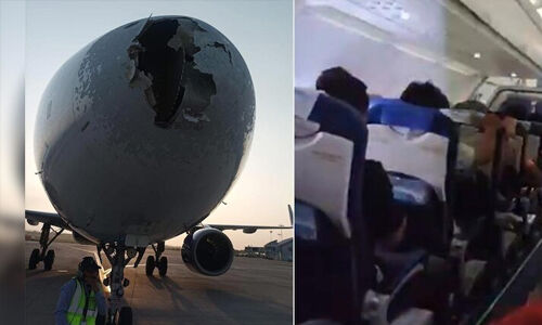 Hailstorm was so severe that it damaged the plane's nose cone. pic.twitter.com/E0BioVa8tF