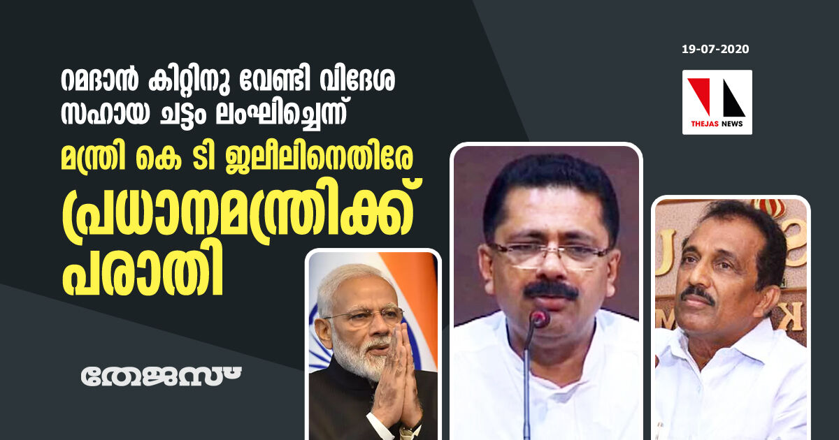 റമദാന് കിറ്റിനു വേണ്ടി വിദേശ സഹായ ചട്ടം ലംഘിച്ചെന്ന്; മന്ത്രി കെ ടി ജലീലിനെതിരേ പ്രധാനമന്ത്രിക്ക് പരാതി