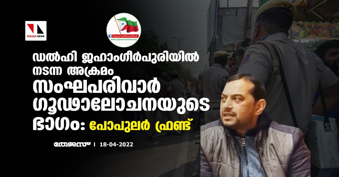 ഡല്ഹി ജഹാംഗീര്പുരിയില് നടന്ന അക്രമം സംഘപരിവാര് ഗൂഢാലോചനയുടെ ഭാഗം: പോപുലര് ഫ്രണ്ട്