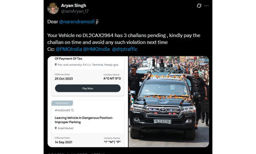 പ്രധാനമന്ത്രിയുടെ വാഹനം ട്രാഫിക് നിയമം ലംഘിച്ചതിന് പിഴയടച്ചില്ലെന്ന്