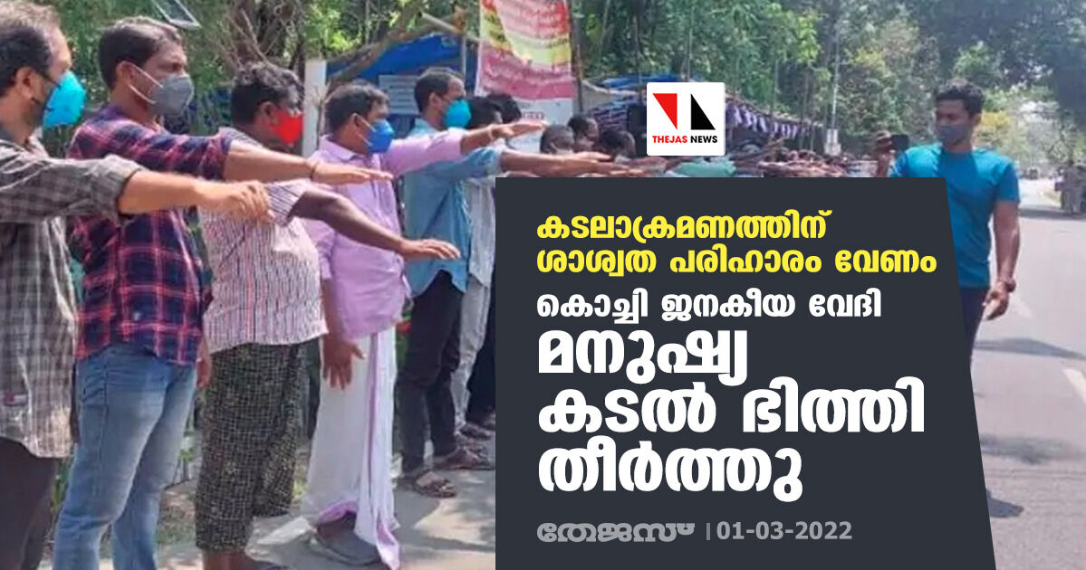 കടലാക്രമണത്തിന് ശാശ്വത പരിഹാരം വേണം; കൊച്ചി ജനകീയ വേദി മനുഷ്യ കടല് ഭിത്തി തീര്ത്തു