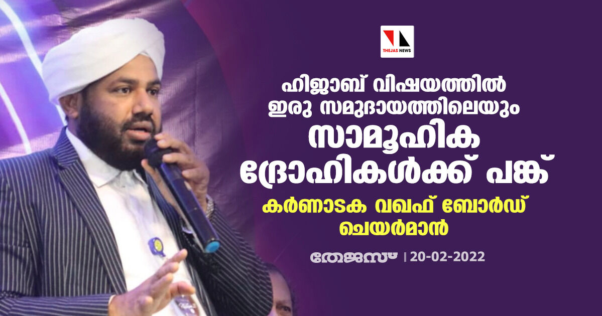 ഹിജാബ് വിഷയത്തിൽ ഇരു സമുദായത്തിലെയും സാമൂഹിക ദ്രോഹികൾക്ക് പങ്ക്: കർണാടക വഖഫ് ബോർഡ് ചെയർമാൻ