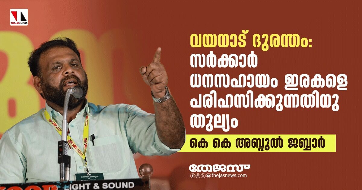 വയനാട് ദുരന്തം: സര്ക്കാര് ധനസഹായം ഇരകളെ പരിഹസിക്കുന്നതിനു തുല്യം-കെ കെ അബ്ദുല് ജബ്ബാര്