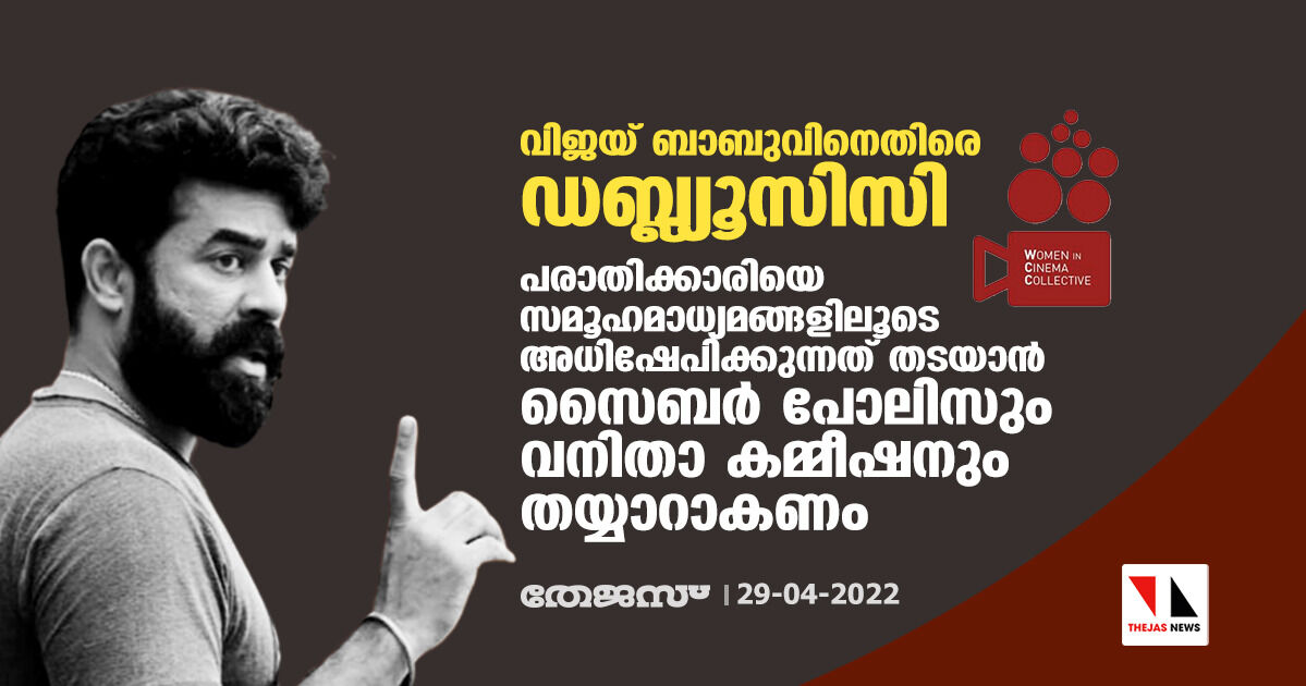 വിജയ്ബാബുവിനെതിരെ ഡബ്ല്യുസിസി;പരാതിക്കാരിയെ സമൂഹമാധ്യമങ്ങളിലൂടെ അധിഷേപിക്കുന്നത് തടയാന് സൈബര് പോലിസും വനിതാ കമ്മീഷനും തയ്യാറാകണം
