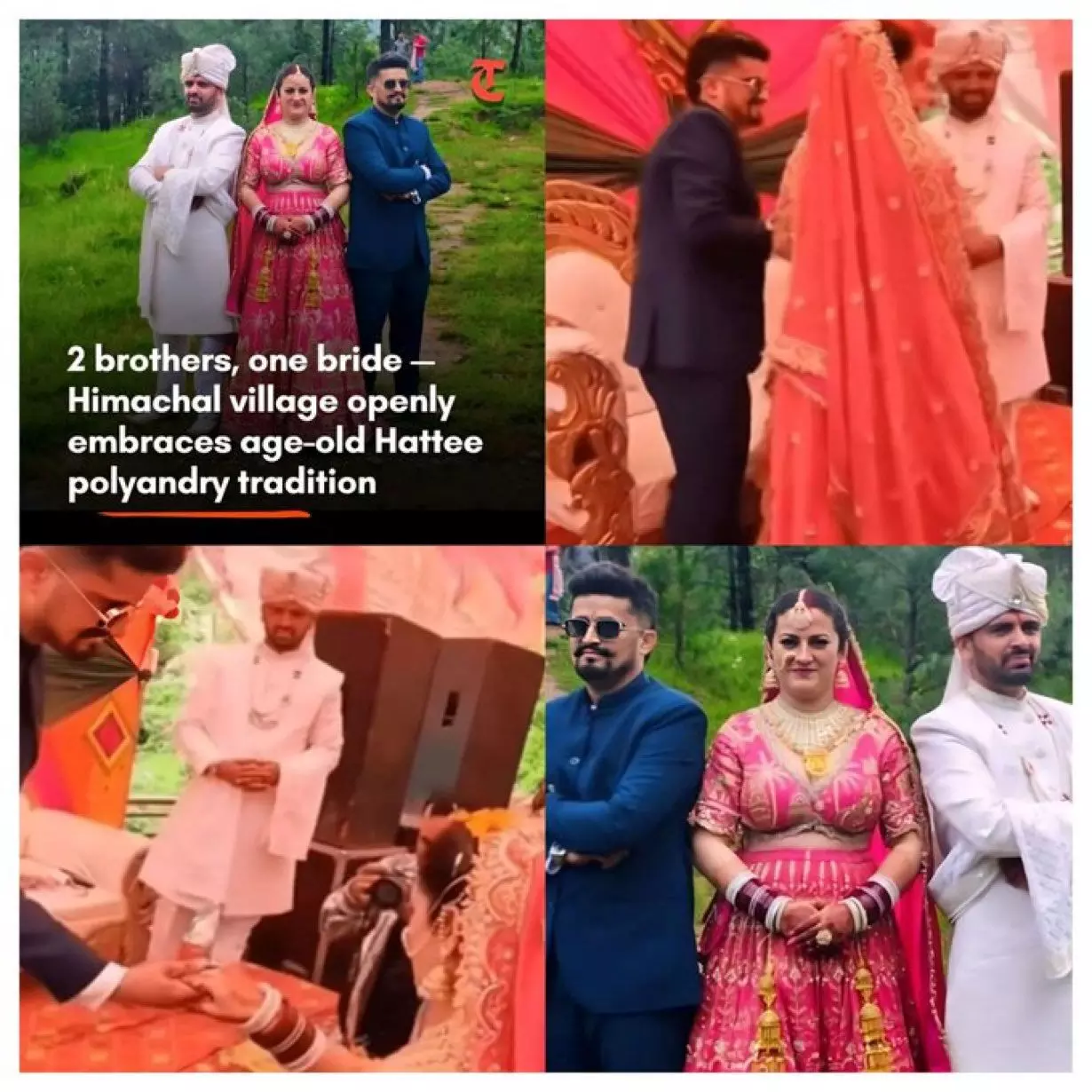 Two real brothers married the same girl, got married according to the old tradition, the ancient tradition of marrying the same girl was followed again #HimachalNews #2boysmarry1girl pic.twitter.com/90iHhKRbDr