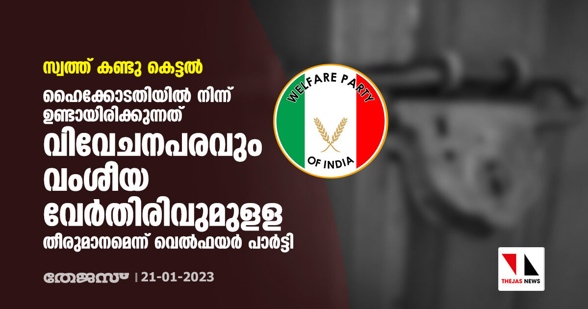സ്വത്ത് കണ്ടു കെട്ടൽ: ഹൈക്കോടതിയിൽ നിന്ന് ഉണ്ടായത് വംശീയ വേർതിരിവുമുള്ള തീരുമാനമെന്ന് വെൽഫയർ പാർട്ടി